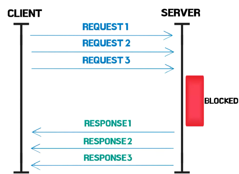 하지만 첫 번째 요청에 대한 응답이 느려지게 되면 그 다음 요청들의 작업들이 완료되어도 지연되는 첫 번째 응답때문에 전체가 느려지게 되는데 이러한 현상을 HOL Blocking이라고 합니다.