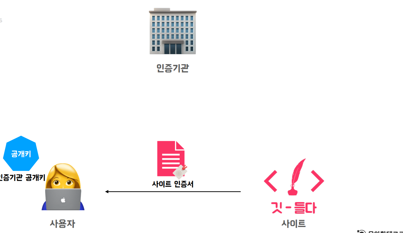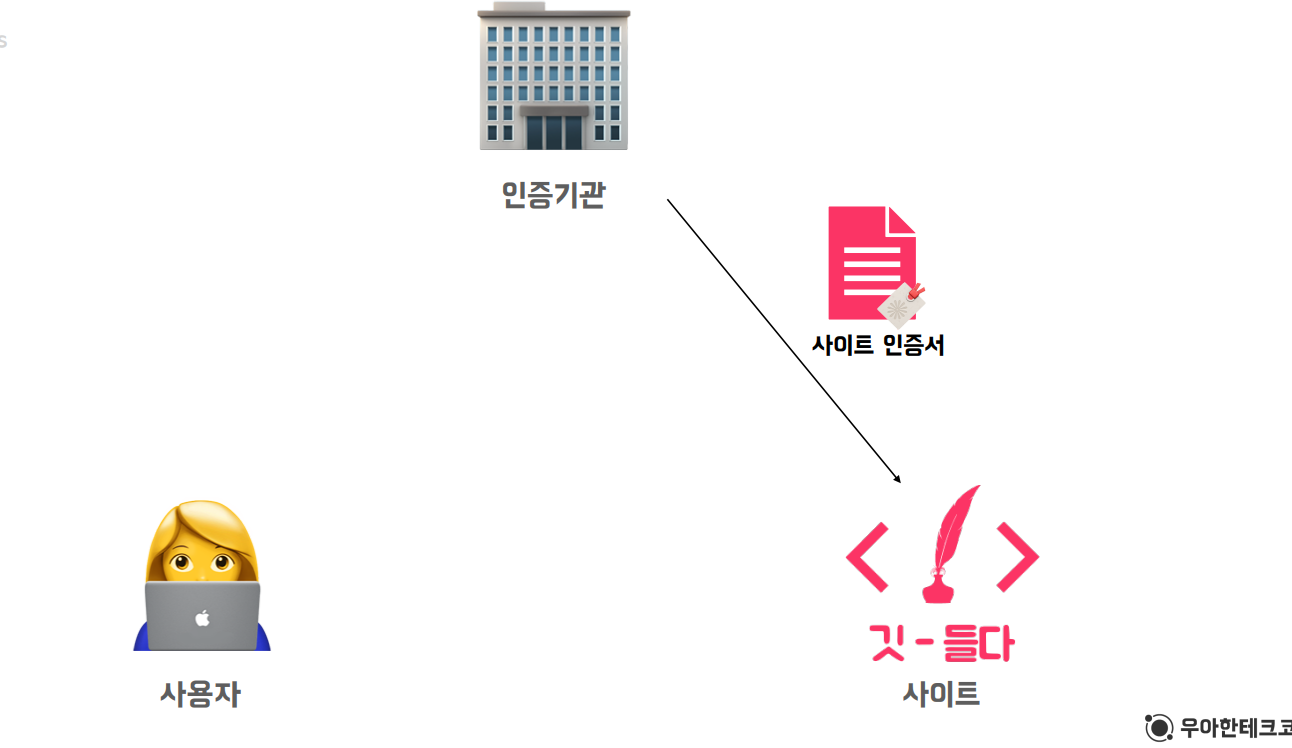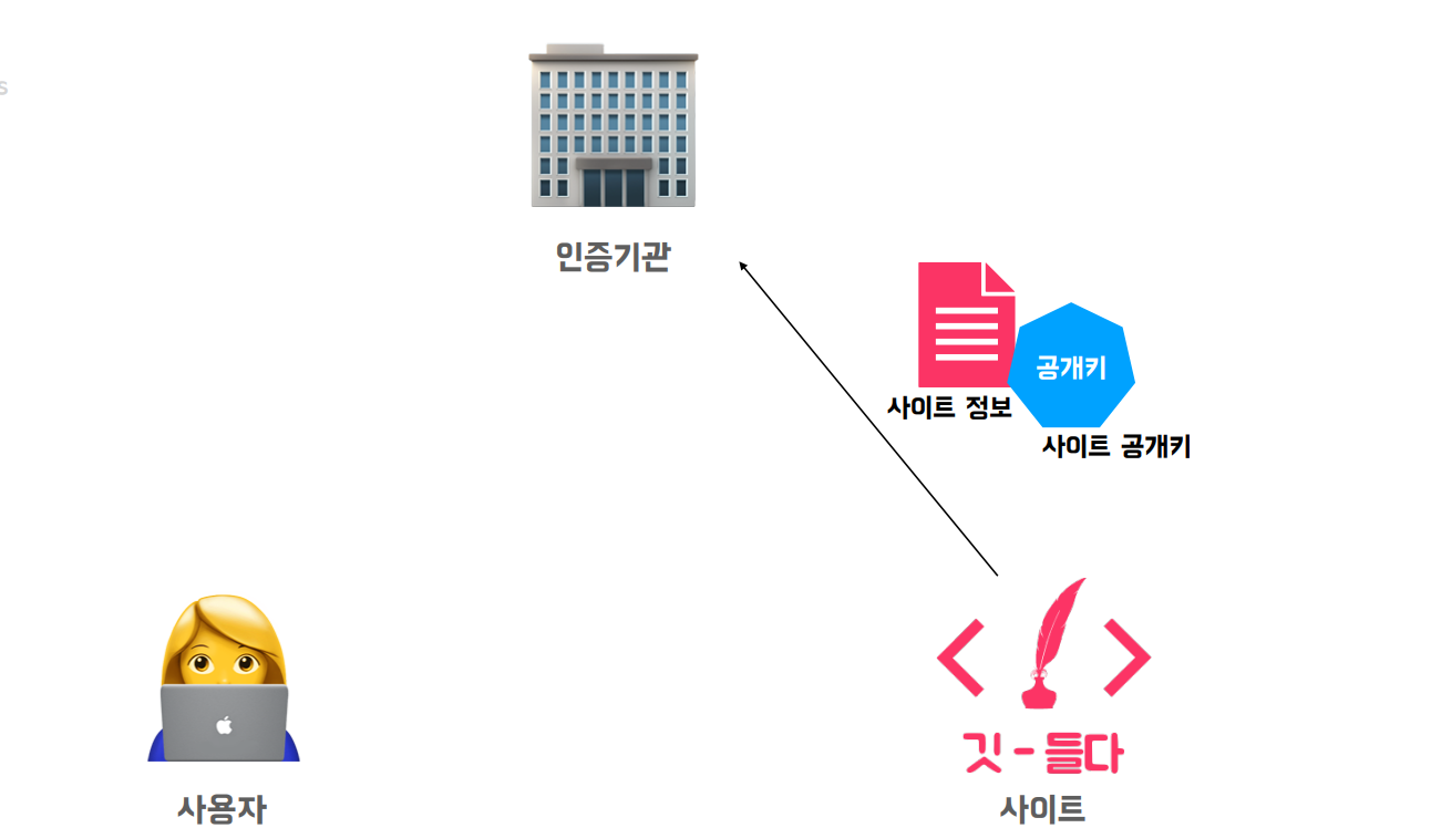 1. 사이트는 인증서를 얻기 위해 인증기관에 사이트 정보와 사이트 공개키를 전달
