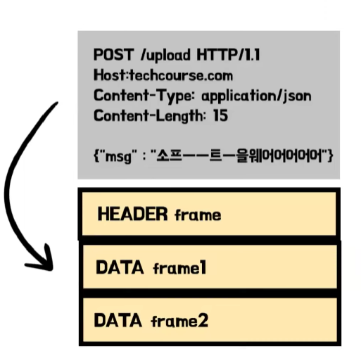 HTTP/2의 핵심은 새롭게 추가된 바이너리 프레이밍 계층을 사용해 요청과 응답의 멀티플렉싱을 지원한다는 것입니다. 기존에 HTTP/1.1에서는 연속해서 보낸 요청에 대해서 앞의 요청이 처리 되지 않으면 뒤의 요청의 응답이 지연되는 HOL Blocking 문제가 있었습니다. 하지만 HTTP/2에서는 메시지를 바이너리 형태의 프레임으로 나누고 전송 후, 받은 쪽에서 다시 조립하는 형식을 사용해 HTTP 단의 HOL Blocking 문제를 해결했습니다. 또한 스트림의 우선 순위를 설정해 우선 순위가 더 높은 리소스를 먼저 응답할 수 있으며, HPACK 압축 형식을 사용해 요청과 응답에 쓰이는 헤더의 메타데이터를 압축해서 주고 받는다는 차이가 있습니다.